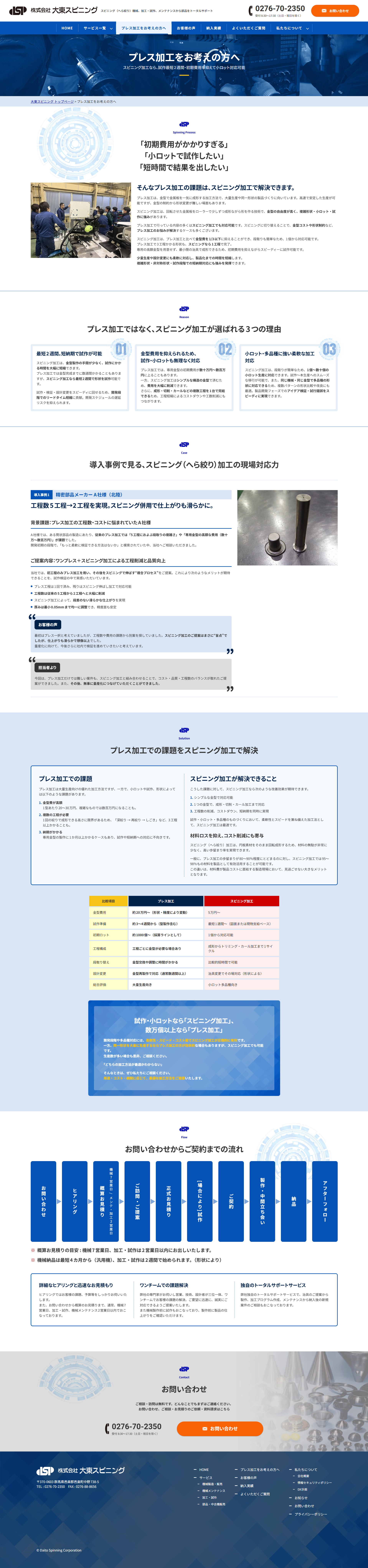 具体的には、スピニング加工を行う企業に向けたサポート力(導入前の相談〜運用フェーズまでの伴走)を軸に情報設計を組み直し、強み・サービス・事例などの関係性が自然に理解できる導線を整備。